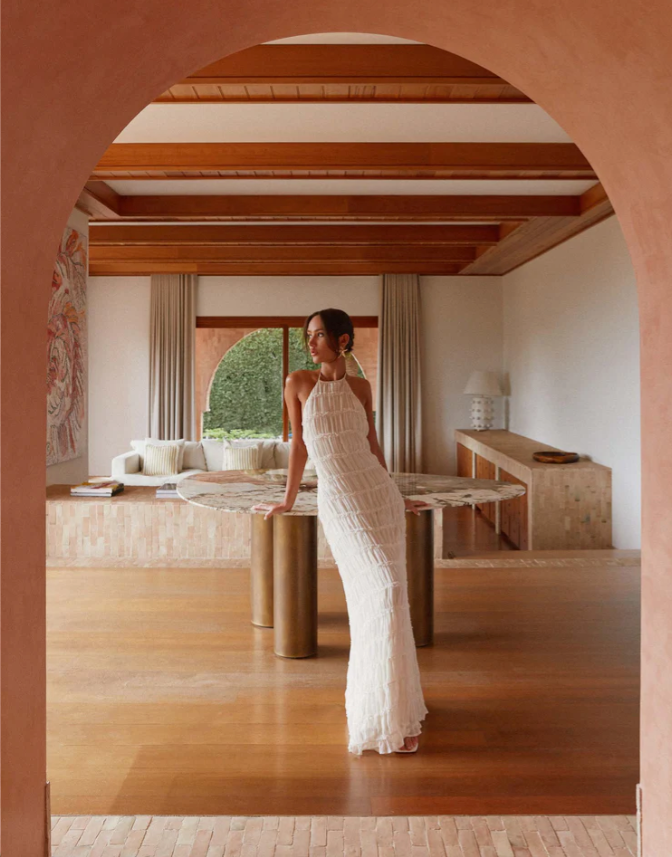 The Margot Dress is crafted from breathable fabric, designed for both comfort and style.